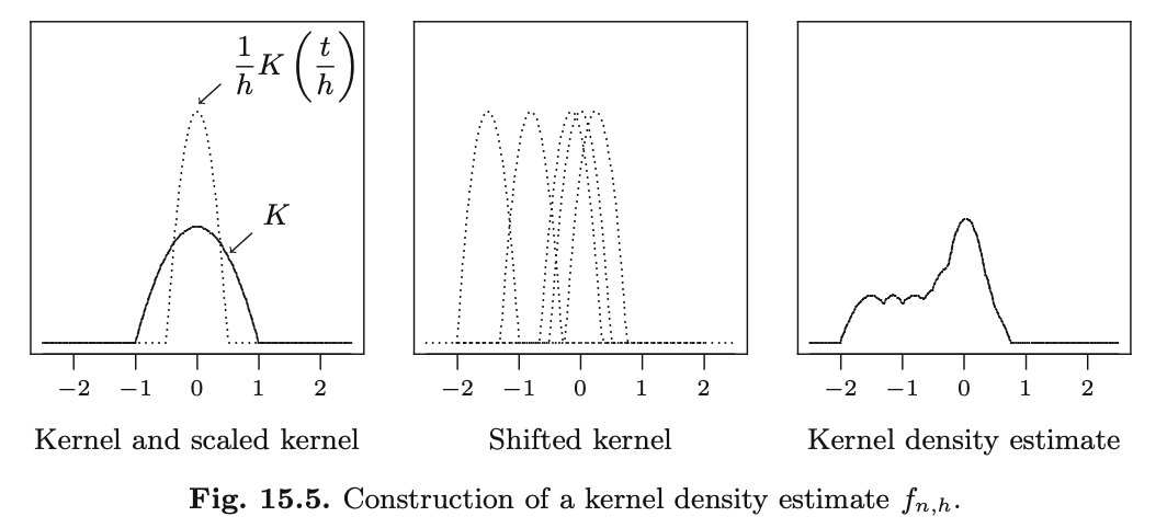 Scale the kernel by \(h\). \[ t \mapsto \frac{1}{h}K\left( \frac{t}{h}\right) \]