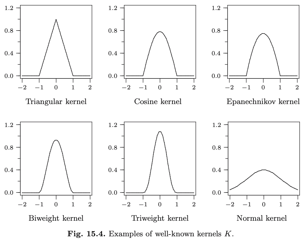 \(K(t)\) is a probability density, that is, \(K(t)\geq 0\) and \(\int_{-\infty}^{\infty} K(t) dt =1\).