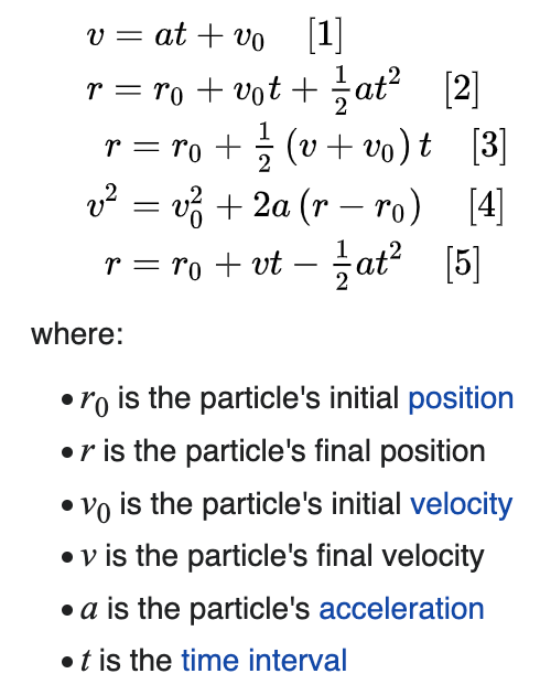 \[ \text{distance}= \alpha + \beta * (\text{velocity}) + \text{random fluctuation} \]