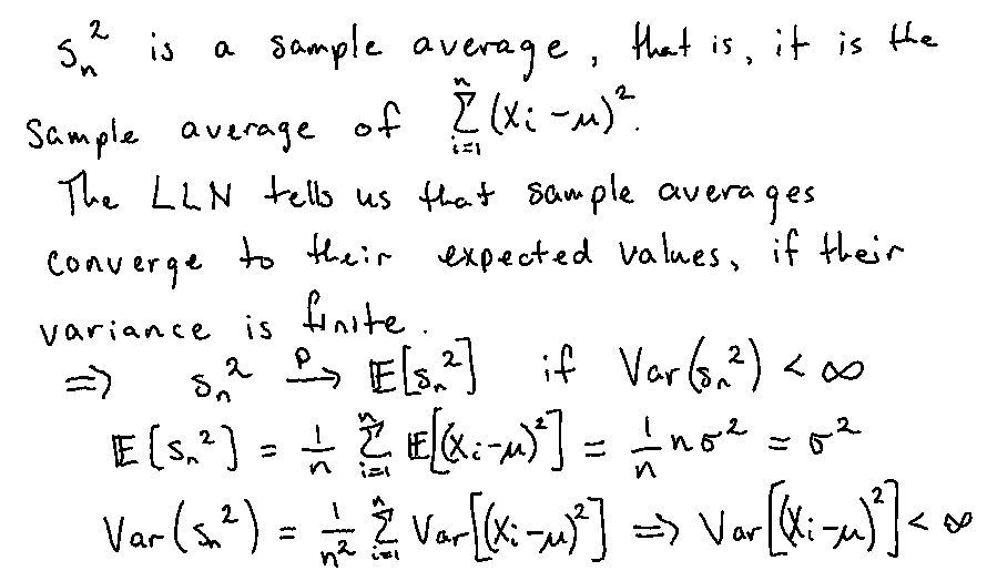 Show that \(\widetilde{s}^2_n \overset{p}{\rightarrow} \sigma^2\). What conditions are required on \(X_i\) for this to be true?