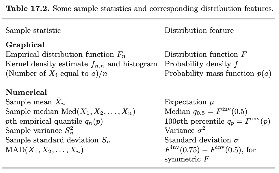 A sample statistic is an object which depends only on the random sample \(X_1, X_2, ...,X_n\): \[ h(X_1, X_2, ...,X_n) \]