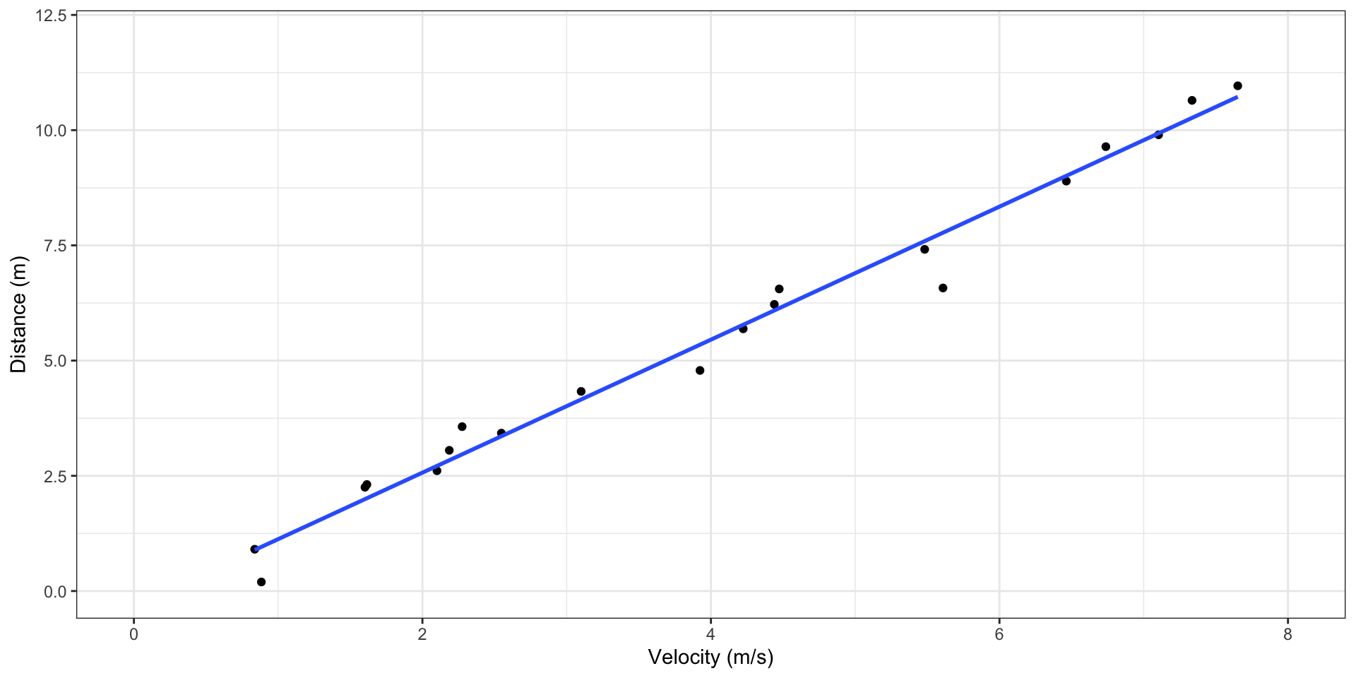 labs(x = "Velocity (m/s)", y = "Distance (m)")