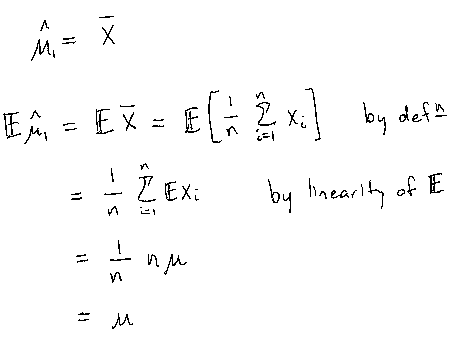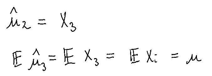 Example 3 Given \(X_1, ...,X_n\) iid with \(\mathbb{E}[X_i]=\mu\). Are the following estimators for \(\mu\) unbiased?