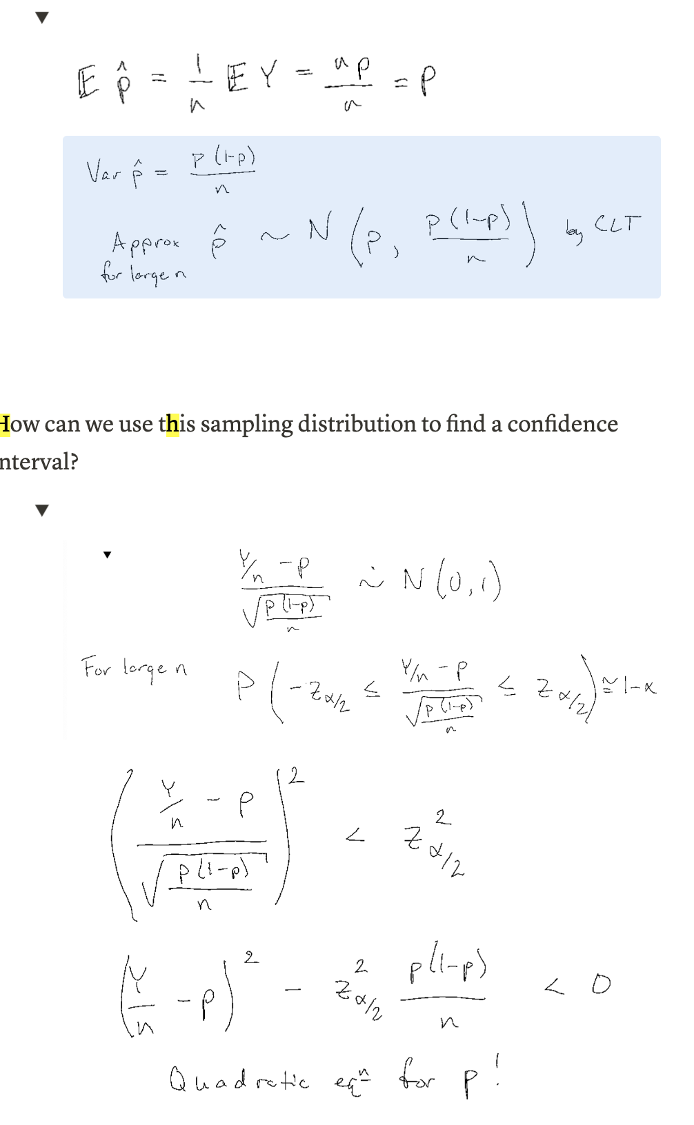 What is the sampling distribution of \(\widehat{p}\)?
