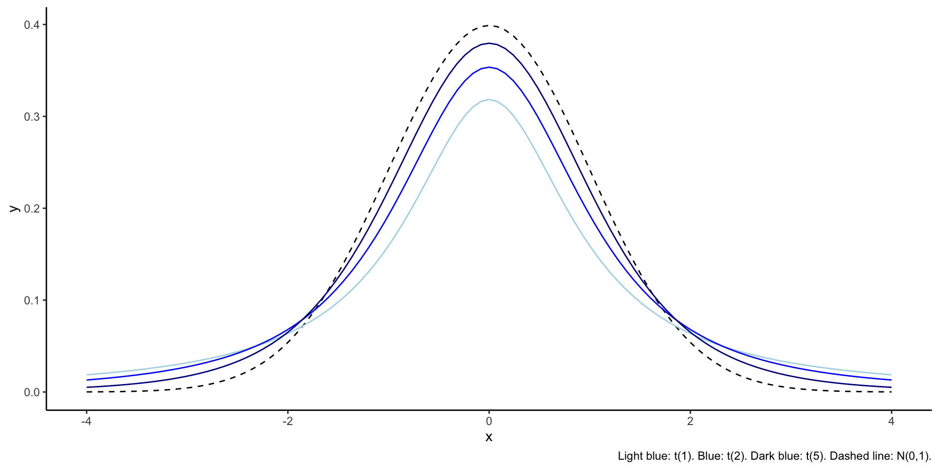 The \(t\) distribution has one parameter, called the degrees of freedom.